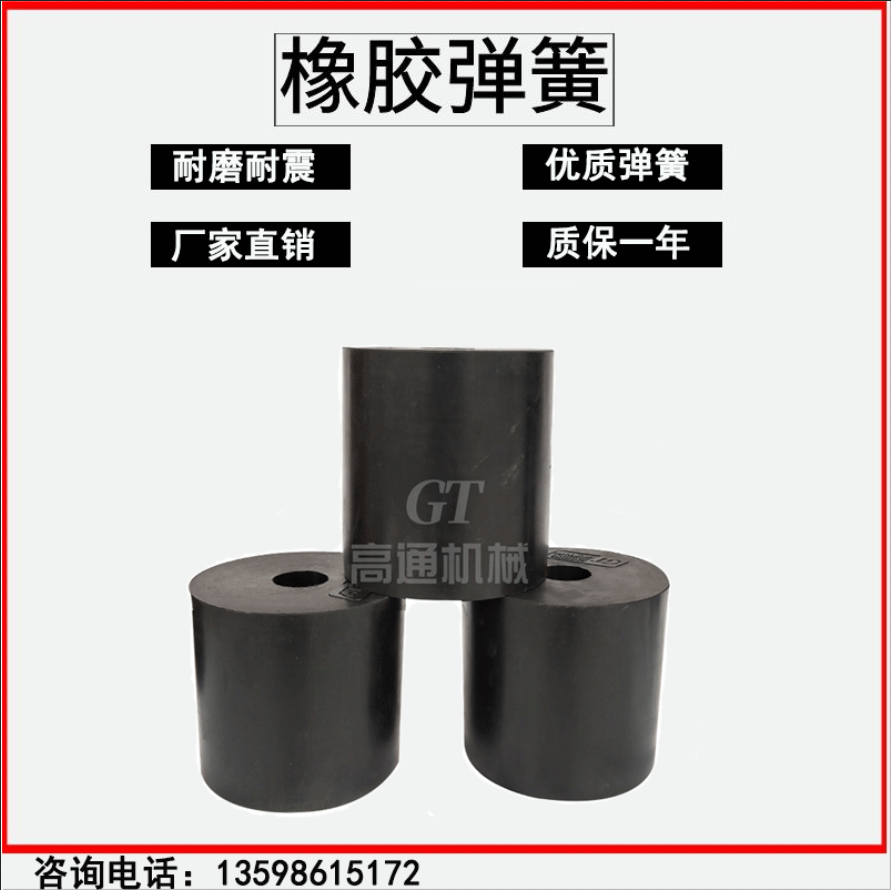 橡膠彈簧可以制成各種各樣的不同形狀,尺寸的制品。橡膠彈簧的結構十分緊湊,能有效的利用空間。它的彈性系數比金屬小很多,且隨硬度的變化在較大的范圍內而變化,所以改變橡膠硬度,可以使彈簧獲得不同的剛度,即同一形狀的橡膠彈簧,其剛度也可以在一定范圍內選取。
